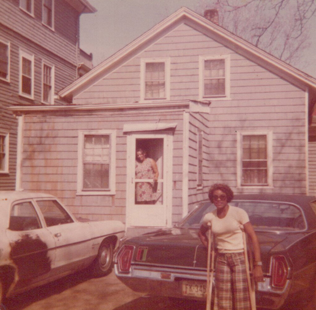 Cheryl: [laughs] The house wasn’t luxurious inside, but it had a lot of character. It had a lot of personalities inside. Upstairs where the two windows are … one was my bedroom window, and me and my sister Sissy shared that room. The other window was the TV room, and we spent a lot of time in the TV room. The window over this side was the dining room and the window over that side was the kitchen. And actually, the side where the kitchen was, my two brothers, Mingo and Allen, built a deck out there in the back. And I’d go up there late at night and just sit. Just sit out there and have a cup of coffee. I did a lot of coffee back then … I think that’s what stunted my growth. [laughs] My grandmother would always say, “If you drink too much coffee, it’s gonna stunt your growth, and coffee makes you nag, nag, nag, nag, nag.” There were a lot of memories in that house. I mean, my mother took in many people. Every time my father came home, he would have a new truck driver with him, every single time. My mother would put them up, give them a blanket, let them sleep on the couch … And she complained about it, but I think at the same time she liked it, because she’d always say, “Would you like a cup of coffee? Would you like something to eat?” And of course, they always said yes. But she complained to my father all the time, “You’re always bringing home strangers.” But I think in her heart, she enjoyed the strangers. My mother didn’t mind feeding, she didn’t mind helping, she didn’t mind taking in, she didn’t mind any of those things. So I think that was her way of showing that kind of love. And that white car right there, that was my father’s car. And that big black spot on the side was because I believe he let Darlene and Gail use it when they went out partying or something, and I think they got in an accident with it. And my father ended up doing a lot of detail on it, he was self-taught, and that’s what that black spot was. He got a dent-puller, pulled out all the dents, and then sanded it down, put the putty up in there, and did what he did. And we painted the car. With spray paint! [laughs]