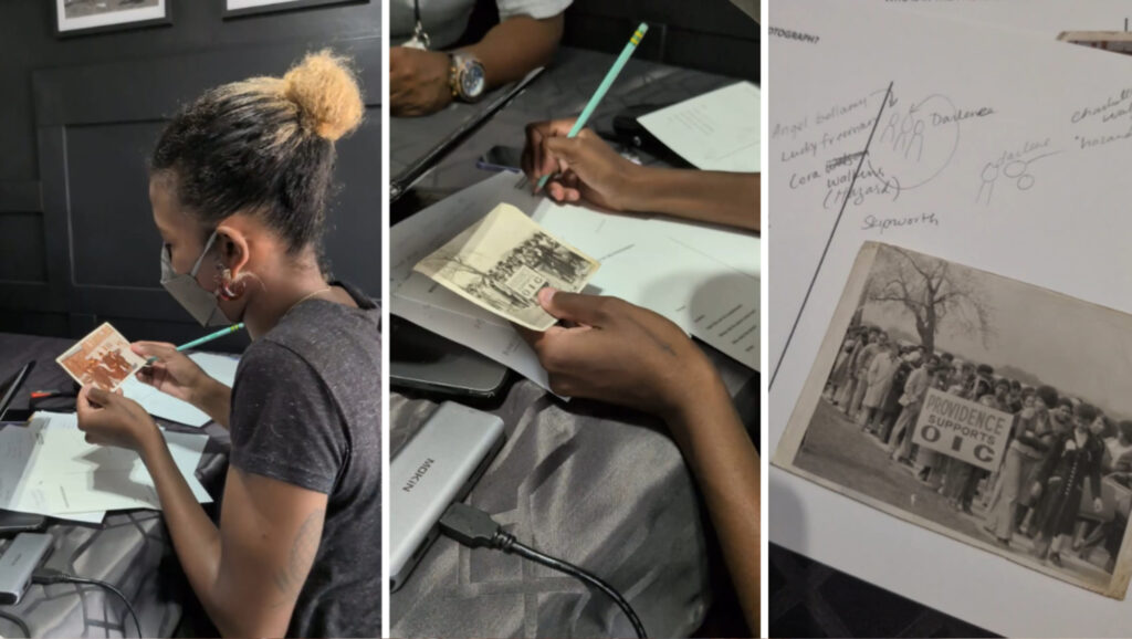 funmi: The South Providence People’s Archive — we like to call ourselves an emerging collection, both digitally and physically, of materials pertaining to Black and Indigenous people, community, and culture on the South Side. And more specifically, we’re concerned with intimate life and depictions, and how these accounts continue to expand the public record. In local archives and other historical repositories, a gap that we continue to notice is that, at least with state and city-sanctioned archival materials, they tend to focus on the physical place, the architectural infrastructure of a place that is often, unfortunately, devoid of people. In shaping our project, [we wanted it to be] in relationship to conversations with various community members, grassroots and community-based organizations, around how folks would like this place and its people to be commemorated. Our initial conception was along the lines of a memory and dream book, but over the last year, that has evolved into a more extensive people’s archive.